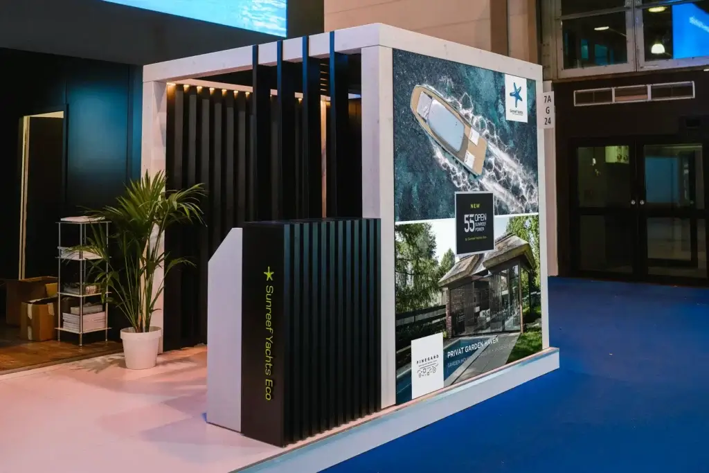 Auf dem Stand von Sunreef Yachts, neben den prächtigen Katamaranen, stand die Pinegard-Pergola. Sie war nicht nur dekorativ, sondern auch eine praktische Ergänzung des Raums und passte perfekt zur Ästhetik der Luxusyachten.
